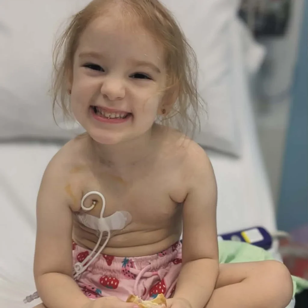 Tessa Perry, from Palmview on the Sunshine Coast, is living with relapsed Stage 4 neuroblastoma. She was first diagnosed in November 2023 and has undergone chemotherapy and two bone marrow transplants. After initially being cleared, the cancer later returned.