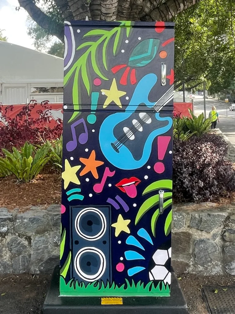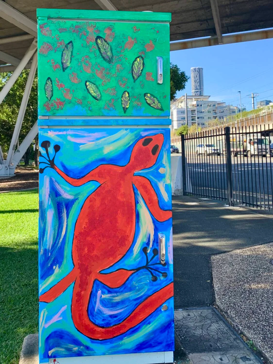 These artworks are part of Artforce Brisbane, an annual community art programme run by Brisbane City Council since 1999. The initiative invites Brisbane residents of all ages, abilities and backgrounds to paint original artworks on traffic signal boxes throughout the city’s suburbs. More than 5,000 volunteers have painted over 1,200 boxes across Brisbane, celebrating local characters, cultures, histories and landmarks while reducing graffiti and vandalism. The programme is managed by Artfully, a Brisbane-based arts consultancy specialising in public art and placemaking. Each year, approximately 80 painting opportunities become available as the council upgrades intersections and replaces old cabinets.